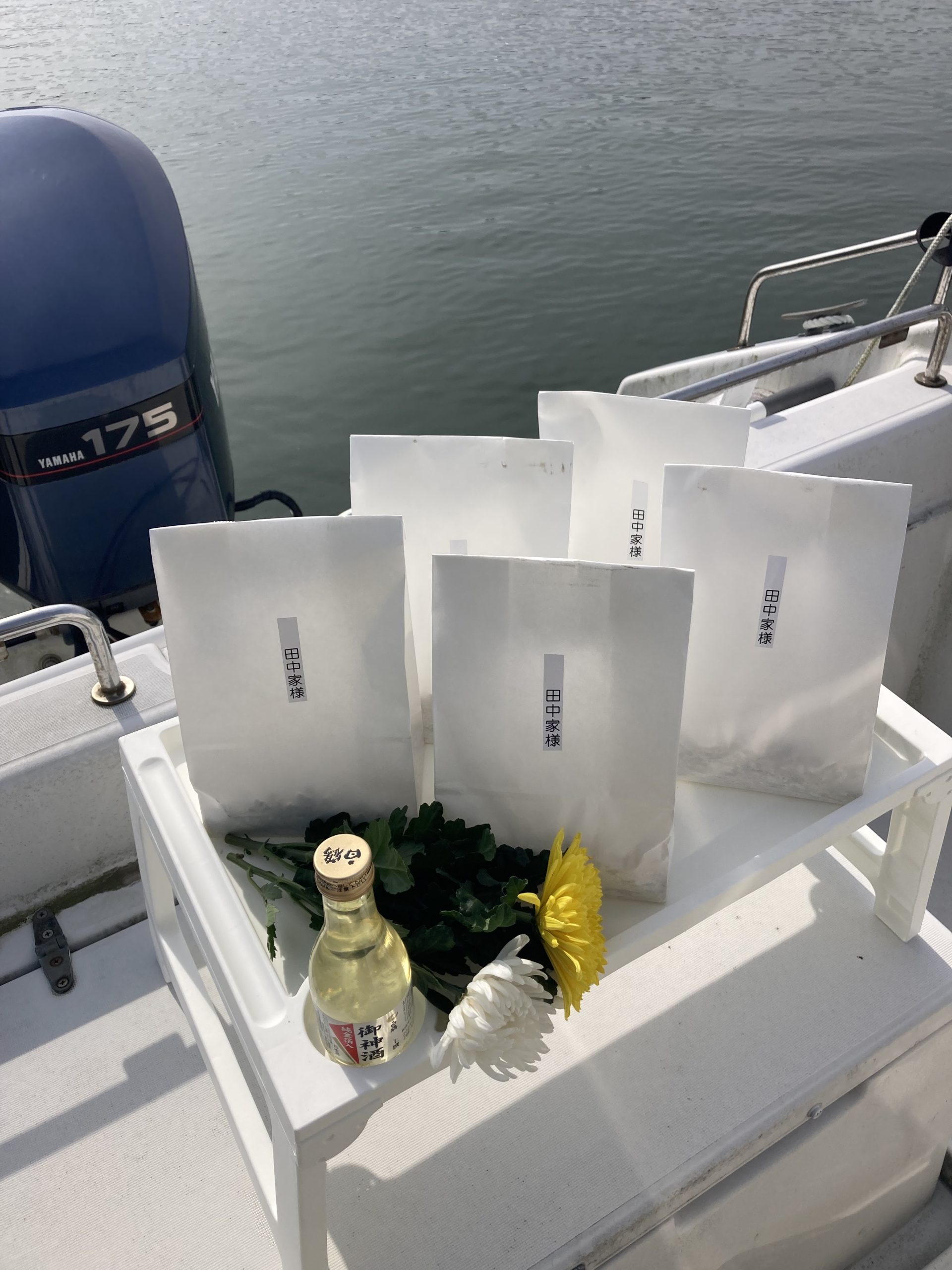 - 散骨する時間にお客様が心の中で手を合わせて故人を想っていただけるといい供養になると考えています。