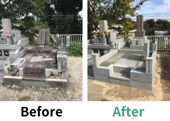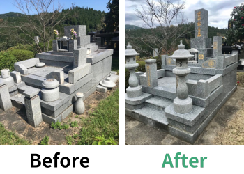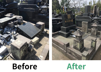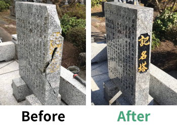 地震等で壊れてしまったお墓や墓誌等を元のお墓を使って修復します。