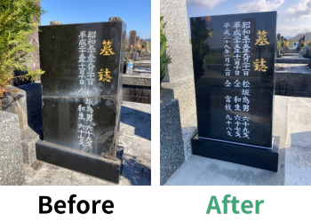 こちらの墓誌は、お客様が地震で壊れて他の石材店に依頼して修理してもらったそうです。ですが、仕上がりに納得できず当社で戒名追加彫りとあわせて施工いたしました。出来上がった墓誌に、新しい墓誌なのかとびっくりされてとても喜ばれていました。